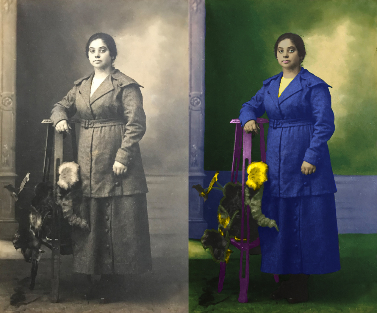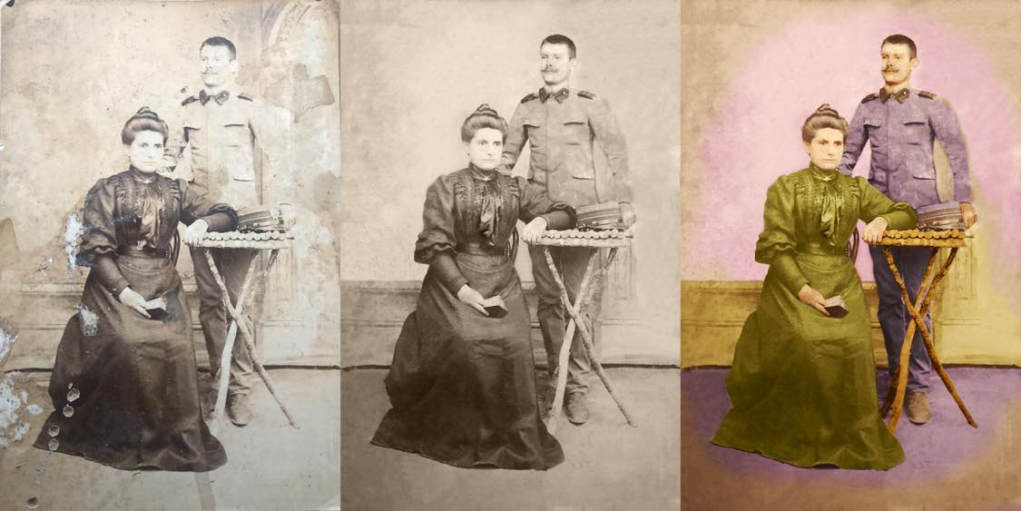 Digital restoration and coloring of a century-old photograph.